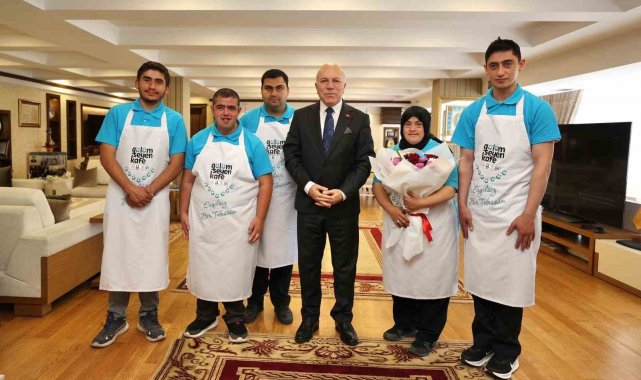 Erzurum Büyükşehir Belediyesi ve İŞKUR İl Müdürlüğü'nün işbirliğiyle hayata geçirilen korumalı işyeri projesi kapsamında, 5 zihinsel engelli birey Gülümseyen Kafe'de istihdam edildi.