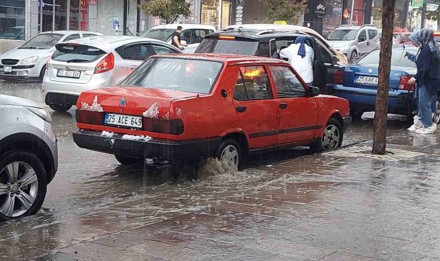 Erzurum'da sağanak yağış hayatı olumsuz etkiledi.