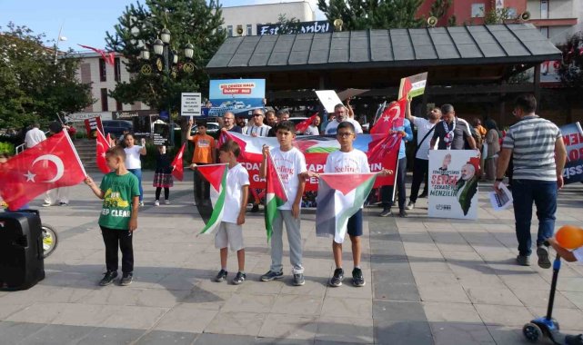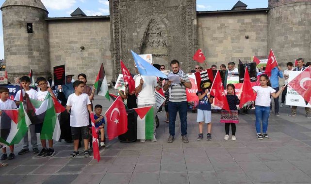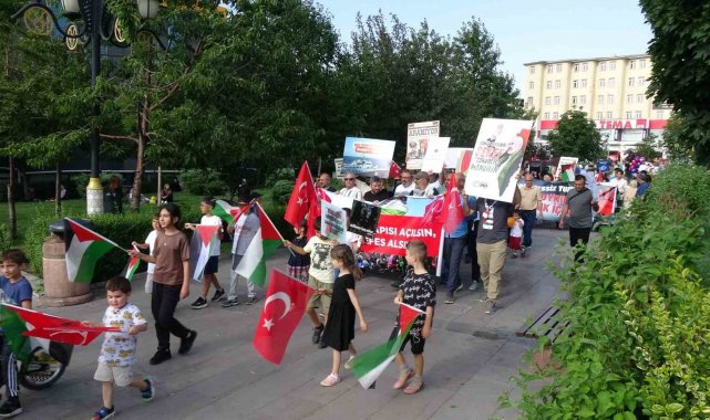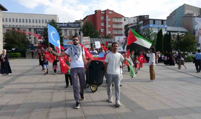 Lala Mustafa Paşa Cami önünde bir araya gelen hekim ve tıp fakültesi öğrencilerinin de bulunduğu sağlık çalışanları, Türk, Filistin ve Doğu Türkistan bayrakları eşliğinde, taşıdıkları döviz ve pankartlarla Yakutiye Medresesi'ne yürüdü.