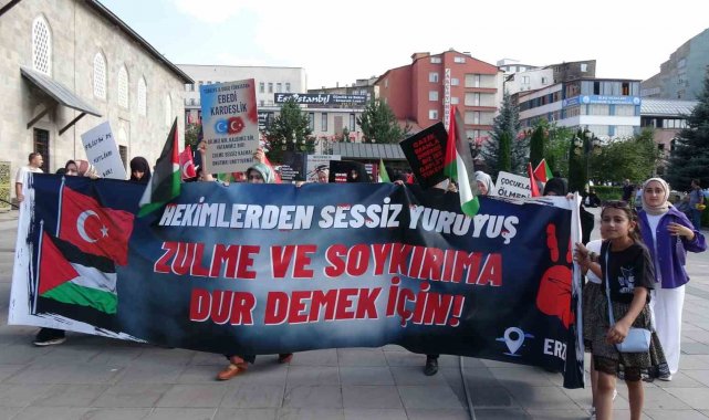 Erzurum'da hekimler ve sağlık çalışanları, İsrail'in Gazze'ye yönelik saldırılarını protesto etmek ve zulmüne dikkati çekmek amacıyla 90 haftadır sessiz yürüyüşlerini sürdürüyorlar.