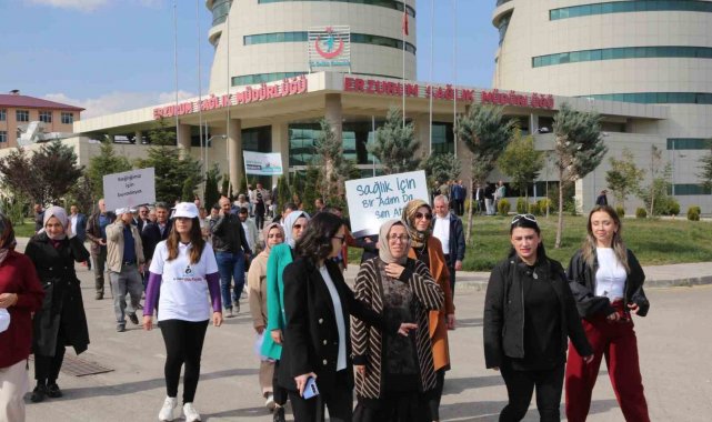 Erzurum Sağlık İl Müdürlüğü geniş katılımlı bir yürüyüşle Dünya Yürüyüş Günü'nde fiziksel aktivite ve sağlıklı beslenmeye dikkat çekti.