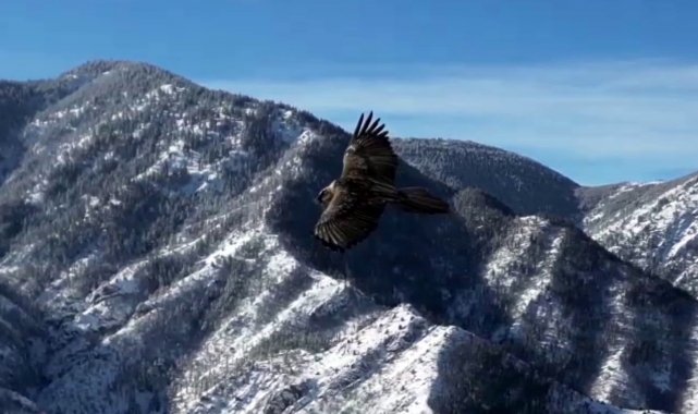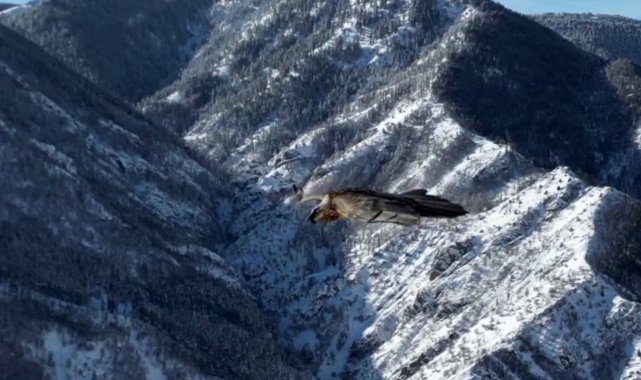 Erzurum'da sakallı akbaba havadan görüntülendi.