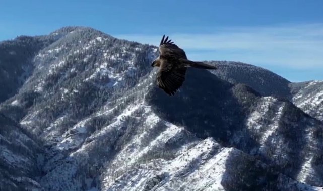 Erzurum'da sakallı akbaba dron ile görüntülendi