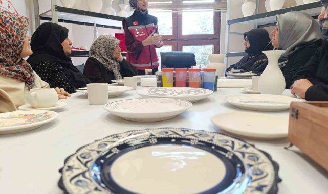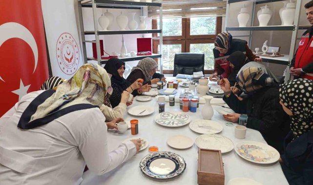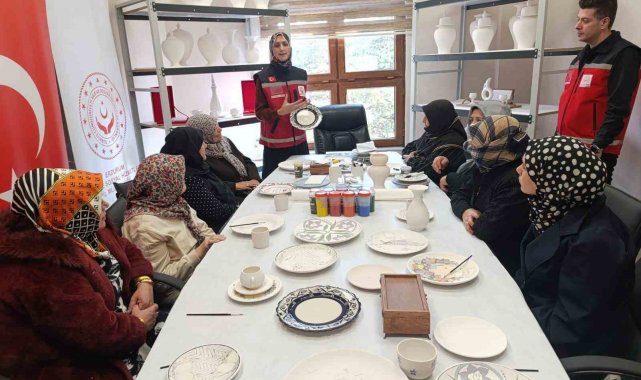 Erzurum'da hayata geçirilen atölye çalışmalarına 25 şehit yakını kadın katılıyor. Katılımcılar, çini sanatında sabrı ve zarafeti, tezhipte ince süsleme sanatını, ebruda ise renklerin uyumunu öğreniyor. Kadınlar, bu eğitimlerle hem geleneksel sanatlarımızı yaşatıyor hem de üretmenin huzurunu yaşıyor.