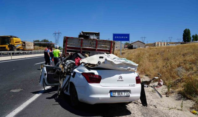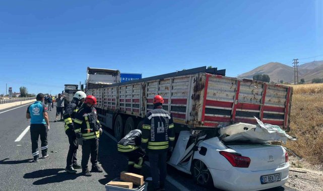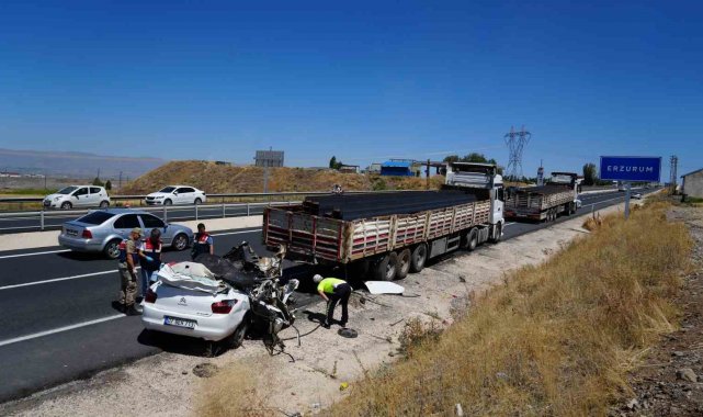 Erzurum'da meydana gelen trafik kazasında, park halindeki tıra arkadan çarpan ve dorsesinin altına giren otomobilde bulunan sürücü hayatını kaybetti.