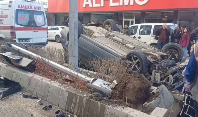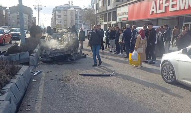 Erzurum'da meydana gelen bir trafik kazasında araç takla attı, araç bulunan şahıslar yaralandı.