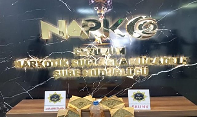 Erzurum'da düzenlenen operasyonda 7 kilo 300 gram skunk ile 2 kilo 150 gram metamfetamin ele geçirildi, 3 şüpheli tutuklandı.
