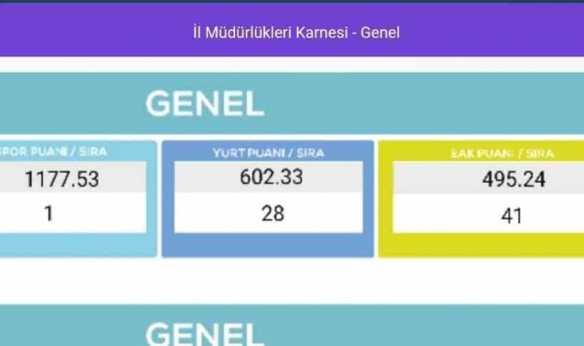 Sporda il karnesindeki başarılarının mimarının Gençlik ve Spor İl Müdürü Levent Çakmur olduğunun altını çizen Spor Hizmetleri Müdürü Erdoğan Dönmez, "İl Müdürümüz öncülüğünde başarılıyız. Hiçbir projemizi ve talebimizi geri çevirmiyor. İl Müdürümüze teşekkür ediyoruz. İl karnesinde Türkiye sıralamasında birinci olmak mutluluk verici. Bu başarıda antrenörlerimizden saha personeline kadar her bir çalışanımızın emeği var. Amacımız sadece yarışmacı sporcu yetiştirmek değil; her yaş grubundan vatandaşımızı spora teşvik etmek. Bu doğrultuda çalışmalarımızı kararlılıkla sürdüreceğiz" diye konuştu.