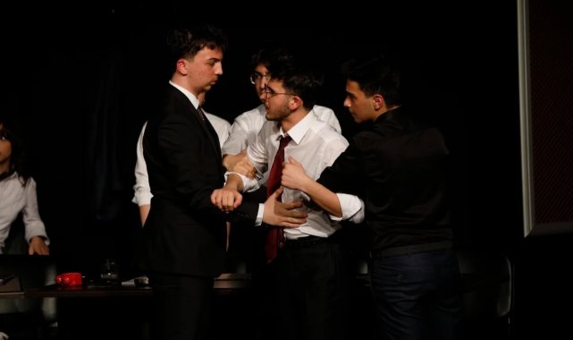 Erzurum Lisesi öğrencileri tarafından sahnelenen "12 Öfkeli" adlı tiyatro oyunu, İbrahim Erkal Kültür Merkezi'nde izleyiciyle buluştu.