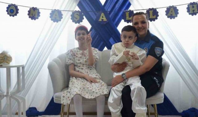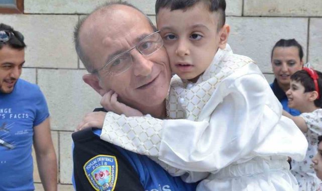 Erzurum'da polis ekipleri örnek bir davranışın altına imza atarak, engelli çocuğun sünnet düğününde aileyi yalnız bırakmadı.