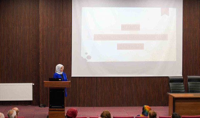 Sağlık Bilimleri Fakültesi Konferans Salonu'nda gerçekleştirilen etkinliğe akademisyenler, öğrenciler ve çok sayıda davetli yoğun ilgi gösterdi. Müftü Yardımcısı Özlem Gülbe, gerçekleştirdiği sunumda kadının toplumsal hayattaki aktif rolüne, bireysel ve sosyal sorumluluklarına vurgu yaptı. İslam dininin kadına verdiği değeri ve tarihi süreçteki öncü kadın figürlerini hatırlatan Gülbe, modern dünyada kadının yönetici kimliğiyle sunduğu katkıları dini ve sosyolojik bir perspektifle ele aldı.