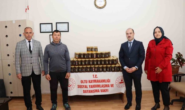 Erzurum'un Şenkaya ilçesine bağlı Doğanköy Mahallesi'nde organik bal üretimi yapan Salim Eser, ürettiği balın bir kısmını ihtiyaç sahiplerine ulaştırılması için Oltu Kaymakamlığı Sosyal Yardımlaşma ve Dayanışma Vakfı'na bağışladı.