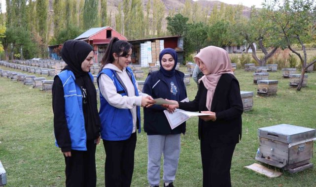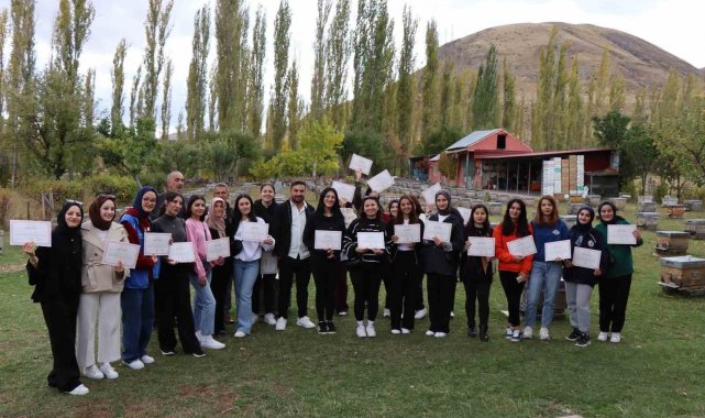 Erzurum'un Narman ilçesinde gençler deneyimli arıcılardan uygulamalı eğitim alarak sertifikalarını almaya hak kazandı.