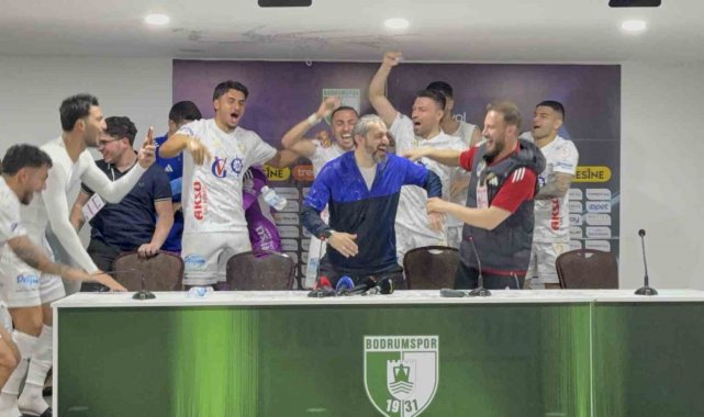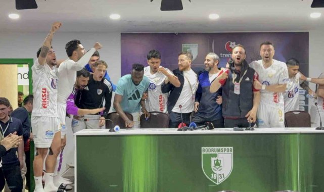 Trendyol 1. Lig'in 36. haftasında Bodrum FK ile 1-1 berabere kalan Erzurumspor FK, Süper Lig'e çıkmayı garantiledi. Maçın ardından düzenlenen basın toplantısına giren Erzurumsporlu oyuncular, Teknik Direktör Serkan Özbalta'nın açıklamasını yarıda keserek Süper Lig kutlaması yaptı.