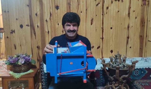 Tortum ilçesine bağlı Bağbaşı Mahallesi'nde Feyzullah Coşkun, babasının geçmişte ürettiği harman makinelerinin minyatür versiyonunu tamamen el emeği ile hassasiyetle inşa etti.