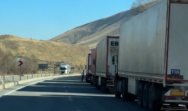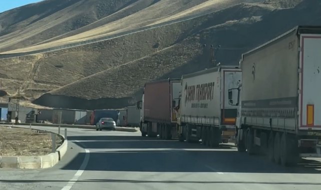 İran tarafında aralıklarla devam eden sistemsel aksaklıklar nedeniyle Hakkari'nin Yüksekova ilçesindeki Esendere Gümrük Kapısı'nda bekleyen tırların oluşturduğu kuyruk yaklaşık 2 kilometreye ulaştı.