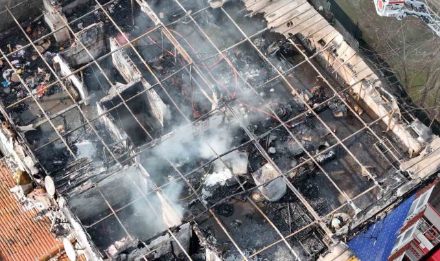 İstanbul'un Esenler ilçesinde 6 katlı bir binanın en üst katında çıkan yangın kısa sürede tüm kata yayıldı. Alevlerin gökyüzüne yükseldiği yangın, itfaiye ekiplerinin müdahalesiyle söndürüldü. Can kaybı ve yaralanmanın olmadığı yangın sonrası kullanılamaz hale gelen daire ve binanın çatısı havadan görüntülendi.