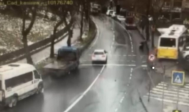 Esenler'de gaz pedalı takılı kaldığı iddia edilen ve içinde yolcuların bulunduğu İETT otobüsünün otoparka daldığı anları güvenlik kamerası görüntüleri ortaya çıktı. Görüntülerde kaldırımda yürüyen bir kişinin kaçtığı ve aracın altında kalmaktan son anda kurtulduğu görülüyor.
