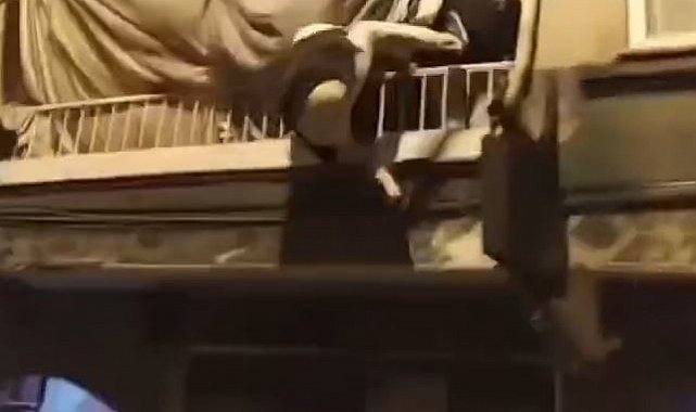 Esenler'de bir apartmanda çıkan yangında mahsur kalan yabancı uyruklular, 1. kattaki dairenin balkonundan atladı. O anlar ise vatandaşların cep telefonu kamerası tarafından kaydedildi.