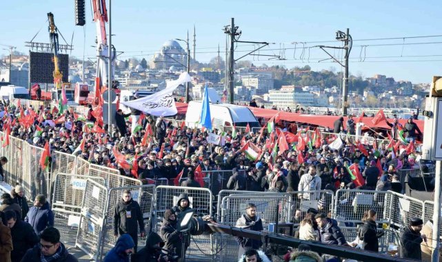Esenyurt Belediye Başkan Vekili Can Aksoy, Filistin'de yaşanan zulme dikkat çekmek amacıyla Galata Köprüsü'nde düzenlenen Filistin'e destek yürüyüşüne katıldı