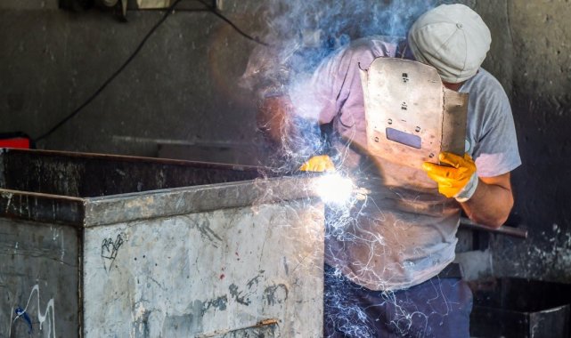 Çöp konteynerlerini temizlik işleri şantiyesinde bakım ve onarımdan geçiriyor