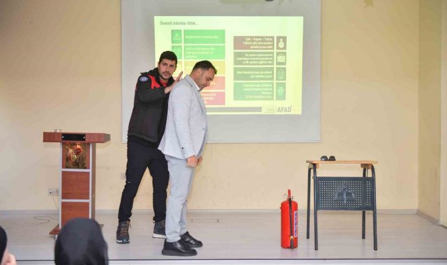 Afet bilincinin ve ilk yardım eğitimlerinin önemine değinen Esenyurt Belediyesi Acil Tıp Teknisyeni Umut Boran Ulu, "Bugün okulumuzda 9, 10 ve 11. sınıfların tamamına afet bilinci eğitimi verdik. Afet bilincinin ardından ilk yardım sunumu yaptık. En temel düzeyde bir yaralanmaya nasıl müdahale edebilecekleri, afet sonrası ilk 72 saatte neye dikkat etmeleri gerektiğini ve enfeksiyon kapmadan yaralara nasıl bakabileceklerini öğrettik. Bunun dışında da herkesin bilmesi gereken heimlich manevrasını öğrettik. Bunlar, ilk yardım, ilaçsız ve herhangi bir teçhizat olmadan, çok basit öğrenilebilecek ve en kritik anlarda hayat kurtarmaya yarayacak olan tekniklerdir. Biz düzenli olarak vatandaşlarımıza bununla ilgili eğitim veriyoruz" dedi.