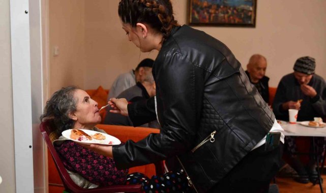 Huzurevi ziyaretinde pastacılık kursu öğrencileri yaptıkları pastayı paylaştı, kuaförlük kursu öğrencileri ise yaşlıların saçlarını keserek bakımını yaptı