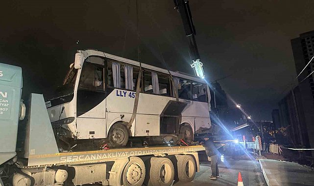 Esenyurt'ta kontrolden çıkarak şarampole yuvarlanan ve 4 kişinin ölümüyle sonuçlanan kazaya karışan servis minibüsü olay yerinden kaldırıldı.