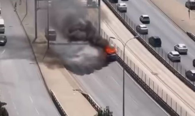 Edinilen bilgilere göre olay, Esenyurt E-5 Sadetdere mevkiinde yaşandı. Seyir halindeki kamyonet aniden alev alınca sürücü kendini dışarı attı. Alev alev yanan kamyonet, sürücüsüz şekilde E-5'te ilerledi. Korku dolu anlar kameraya yansıdı.