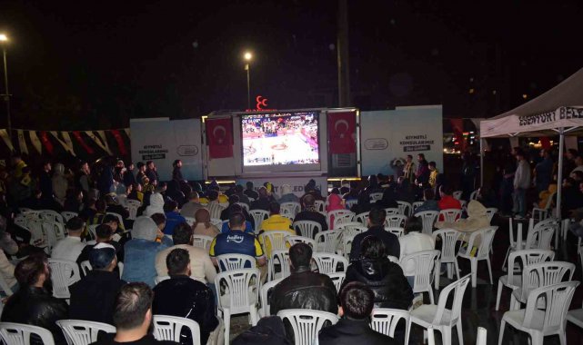 EuroLeague Final Four Finali'nde Fenerbahçe Beko'nun Monaco karşısındaki zaferi, Esenyurt'ta dev ekranda izlendi. Belediye, alanda toplanan vatandaşlara çay ve çorba ikram etti.
