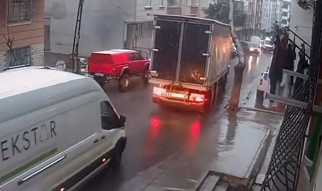 Olay, Esenyurt Sultaniye Mahallesi 614. Sokak'ta yaşandı. Edinilen bilgiye göre, Seyir halindeki kamyon yol kenarında duran ağaca çarptı. Ağaç bir süre sonra yoldan geçen başka bir aracın üzerine devrildi. Neye uğradığını şaşıran sürücü aracı durdurdu. Kazada yaralanan olmazken araçta maddi hasar meydana geldi. Ağacın devrildiği anlar ise bir iş yerinin güvenlik kamerasına yansıdı.