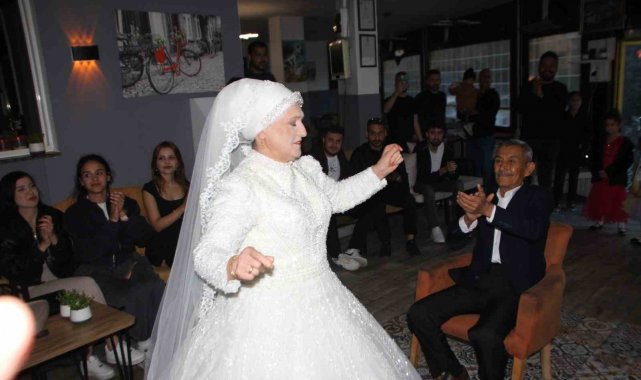 45 yıl sonra ilk kez gelinlik giymenin mutluluğunu yaşayan Fatma Yılmaz da, "Mutluyum, huzurluyum. Yıllarca gelinlik hayali kurdum. Gelinlik giymeyi çok istediğim için buna karar verdim. Eşim de normal karşıladı. Çocuklarımın bazıları yanımda onlarla paylaştık. Onlar da normal karşıladılar. Huzurluyum. Mutluyum" şeklinde konuştu.