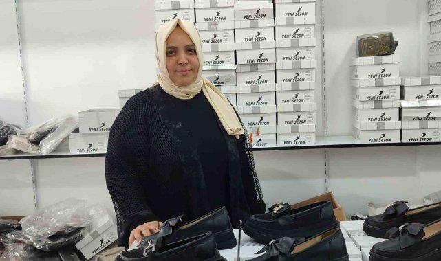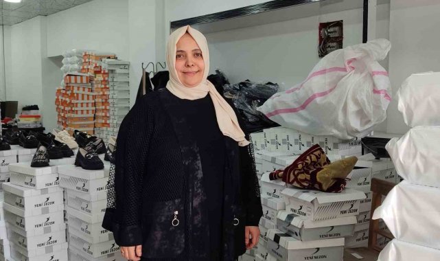 Kahramanmaraş'ta 2 çocuk annesi kadın, eşine destek amaçlı başladığı ayakkabı imalatında, kendi işinin patronu oldu.