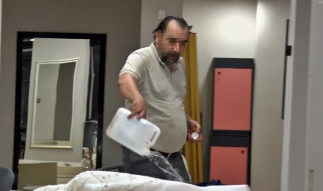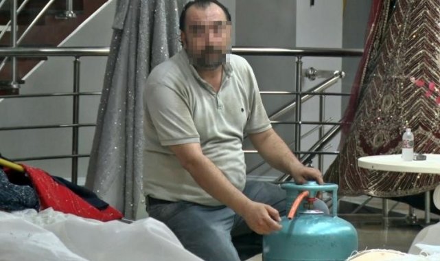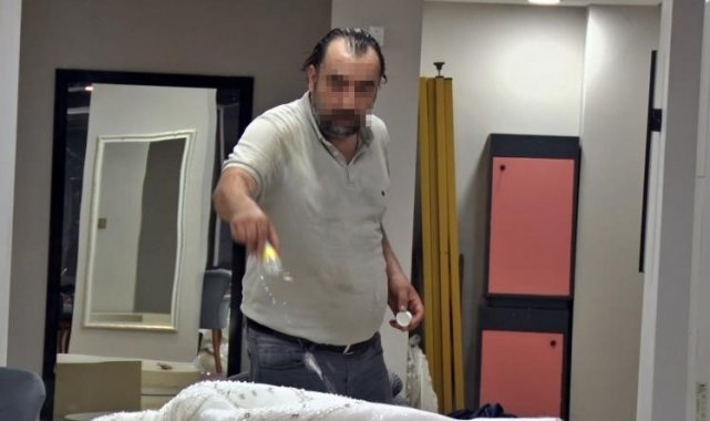 Eşinin mağazasına girip gelinliklerin üzerlerine kolonya döktü, tüpe çakmağı dayayınca tazyikli suyu yedi