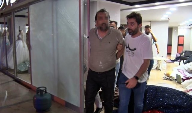 Belirtilen adrese gelen ekipler, kolonya ve dezenfektanı gelinliklerin üzerine döküp elinde çakmakla gezen Bahadır T.'yi uzun süre ikna etmeye çalıştı. Eşinin çocuklarını göstermediğini ve onların velayetini almak istediğini belirten Bahadır T. yine eşinin gelinlik mağazasının sattığını ileri sürüp eylemi bu yüzden yaptığını söyledi. Ekiplerin tüm çabalarına rağmen gelinlikleri parçalamaya devam edip içerideki eşyalara da zarar veren Bahadır T. bir süre sonra ise üst kattan aldığı mutfak tüpünü getirdi.