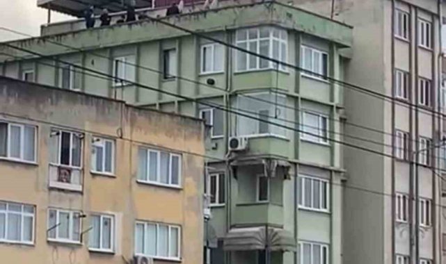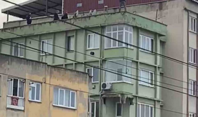 Saatlerdir çatıda bekleyen şahıs polis ekiplerinin ikna çabasıyla çatıdan indirilirken, şahsın eşiyle barışmak için çatıya çıktığı öğrenildi.