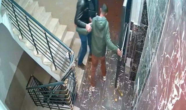 Öte yandan, saldırı anı da apartmanın güvenlik kamerası tarafından kaydedildi.