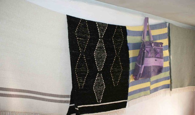 Eski giysilerin iplerinden harika eşyalar dokuyor