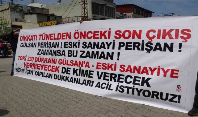 Eski sanayi esnafından Yücel Akbay, "Gülsan Sanayi esnafına söz verilen ve inşa edilen Toybelen Sanayi Sitesi'nde bize de söz verildi, yapılacağı söylendi. Geldiğimiz süreçte üzerinden 4-5 yıl geçti. Gülsan Sanayi esnafı çok memnun, yerlerini aldılar. Biz ise Eski Sanayi esnafı olarak mağdur edildik. 2 yıldır bu durumu dile getiriyoruz. Orada bize göre de dükkanlar yapıldı. Neden bize teslim edilmiyor? Devlet yetkililerinin bu kangren olmuş yarayı çözmesini istiyoruz. TOKİ'nin elinde kalan 330 adet dükkanın eski sanayi esnafına verilmesini talep ediyoruz" dedi.