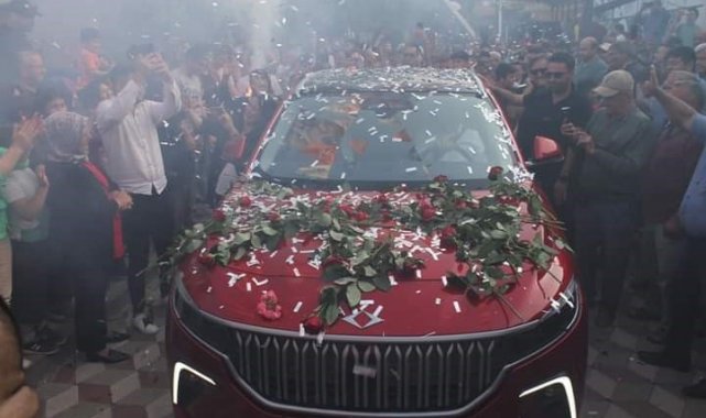 Eski Tarım ve Orman Bakanı Bekir Pakdemirli tarafından Manisa'nın Sarıgöl ilçesine getirilen yerli ve milli otomobil Togg, Demokrasi Parkı'nda halkın konfeti ve çiçekleri ile karşılandı.