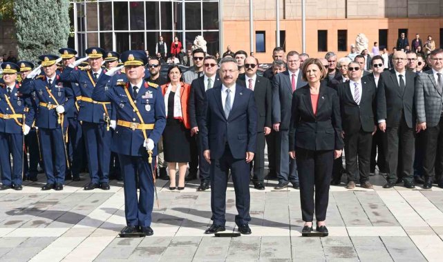 Eskişehir'de 29 Ekim Cumhuriyet Bayramı dolayısıyla Valilik Meydanı'nda çelenk sunma töreni gerçekleştirildi.