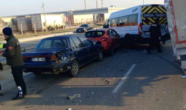 Eskişehir Organize Sanayi Bölgesi'nde (OSB) bir tırın, önündeki servis araçlarına ve otomobillere arkadan çarpması sonucu meydana gelen zincirleme kazada 12 kişi yaralandı. Yüklü olduğu için duramayan tırın neden olduğu kazada araçlar hurdaya dönerken, facianın eşiğinden dönüldü.