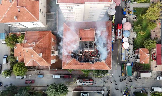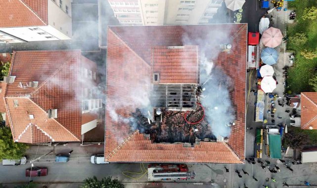 Öte yandan, bina, yoğun duman ve tedbir açısından boşaltıldı. Açılan tezgâhlar arasından olay yerine gelen itfaiye ekiplerinin hızlı ve etkili müdahalesiyle çatı yangını alt katlara sirayet etmeden kontrol altına alındı. Ekiplerin çalışması havadan görüntülendi. Binanın çatısını tamamen küle çeviren yangının neden çıktığı ise araştırılıyor.