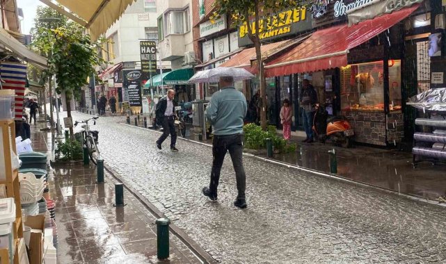 Eskişehir'de aniden bastıran sağanak yağışa dışarıda hazırlıksız yakalanan vatandaşlar ıslanmamak için kapalı alanlara koşuştururken, bazıları ceketleri ve şemsiyeleri ile kendilerini korumaya çalıştı.