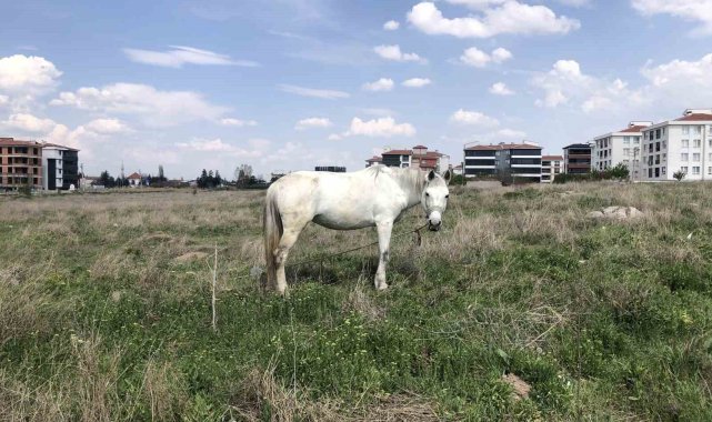 Eskişehir'in kırsal kesimlerinde başıboş atlar, artan sıcaklıklarla birlikte park ve bahçelerde, kırsal kesimdeki arazilerde beslenmeye çalışırken görüntülendi.