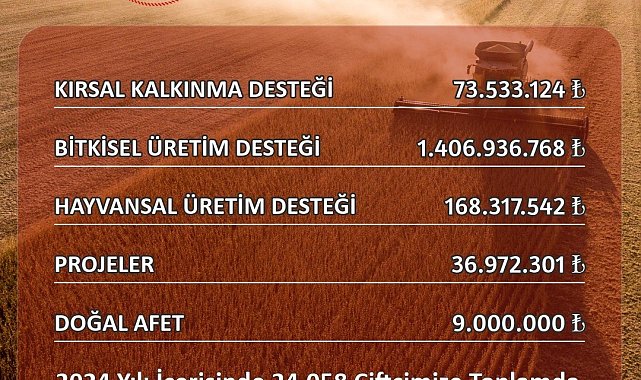 Eskişehir İl Tarım ve Orman Müdürlüğü'nün 2024 yılında 24 bin 58 çiftçiye toplam 1 milyar 694 milyon 759 bin TL destekleme ödemesi yaptığı açıklandı.