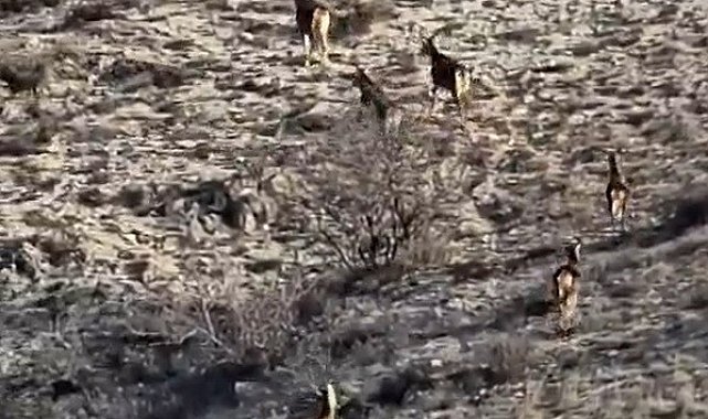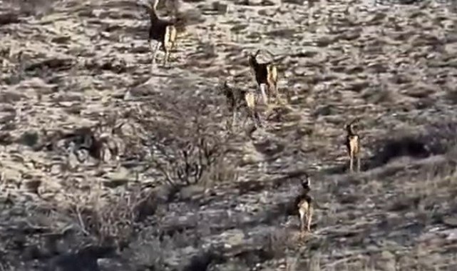 Eskişehir'de kırsal alanda 8 geyiğin koşuşturma anları amatör kamera tarafından görüntülendi.