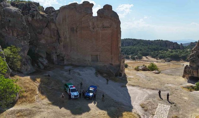 Eskişehir İl Jandarma Komutanlığı tarafından Yazılıkaya Frig İnanç Merkezi'nde komando ve asayiş timlerince yapılan çalışmalarda; sit alanları, tarihi yapılar, ören yerleri ve doğal koruma alanlarında denetimler artırılırken, izinsiz kazı faaliyetlerine karşı devriye faaliyetleri sıklaştırıldı.