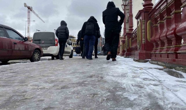 Eskişehir'de kar yağışı sonrası buz tutan kaldırımlar yayalara zor anlar yaşattı.