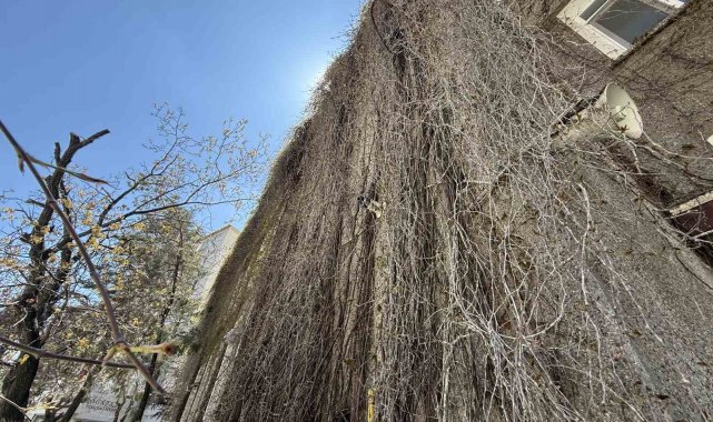 Eskişehir'de dış cephesini saran sarmaşıkla bilinen ve öyle isimlendirilen Hal Camii'nde, kış mevsiminin ardından dallar yeniden tomurcuklanmaya başladı.